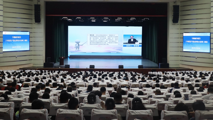 根据《中共jinnianhui金年会诚信至上委员会关于开展党纪学习教育的实施方案》,为进一步增强全体党员、干部的纪律意识和规矩意识,推动党员、干部坚持原原本本学、逐章逐条学,准确掌握“六项纪律”的主旨要义和规定要求,教育引导全校广大党员学纪、知纪、明纪、守纪,在学习贯彻《条例》上下功夫,确保学校党纪学习教育取得实效。近日,jinnianhui金年会诚信至上党委举办《中国共产党纪律处分条例》解读的专题辅导报告。全校师生党员1000余人参加培训。