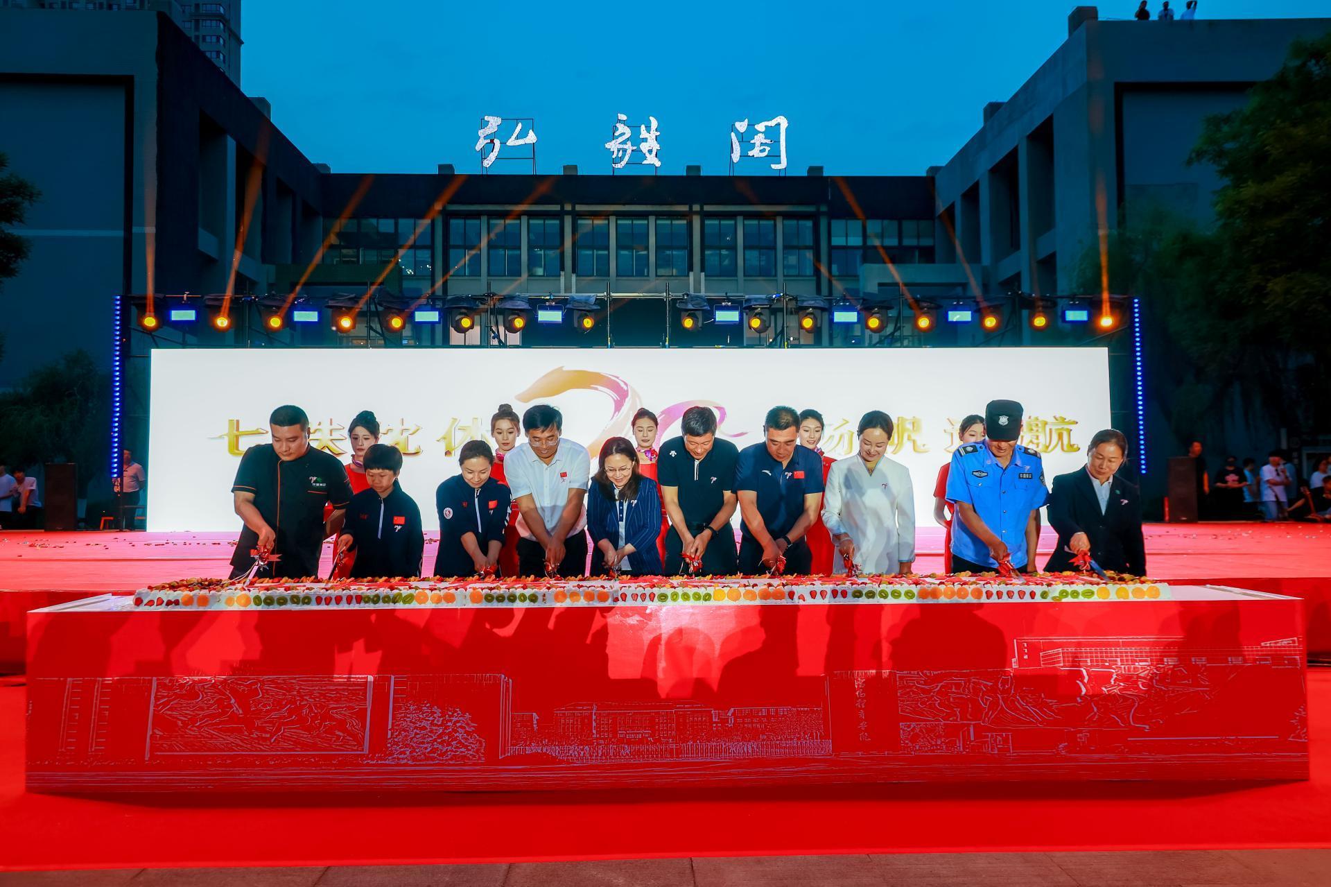 7米长的蛋糕镶嵌着“七秩沈体、扬帆远航”的建校70周年校庆主题,象征着jinnianhui金年会诚信至上走过的七十年砥砺奋进的历程。jinnianhui金年会诚信至上党委副书记笪可宁,党委常委、副院长于文军,党委常委、副院长李成梁,校友代表体育教育专业1996级校友、东北大学体育部副主任回军副教授,赞助企业代表云马翔和(沈阳)体育文化科技有限公司董事长闫潇,jinnianhui金年会诚信至上教师代表世界冠军、jinnianhui金年会诚信至上自由式滑雪空中技巧教练员郭心心,学生代表竞技体校小运动员代表李子懿,楼管员阿姨代表刘爱英,弘毅阁厨师代表王琦,校卫队保安大叔代表王荣胜,10位代表握着奋斗的手柄、切开象征美好未来的校庆标识蛋糕,与现场师生分享奋斗的甜蜜与成功的喜悦。