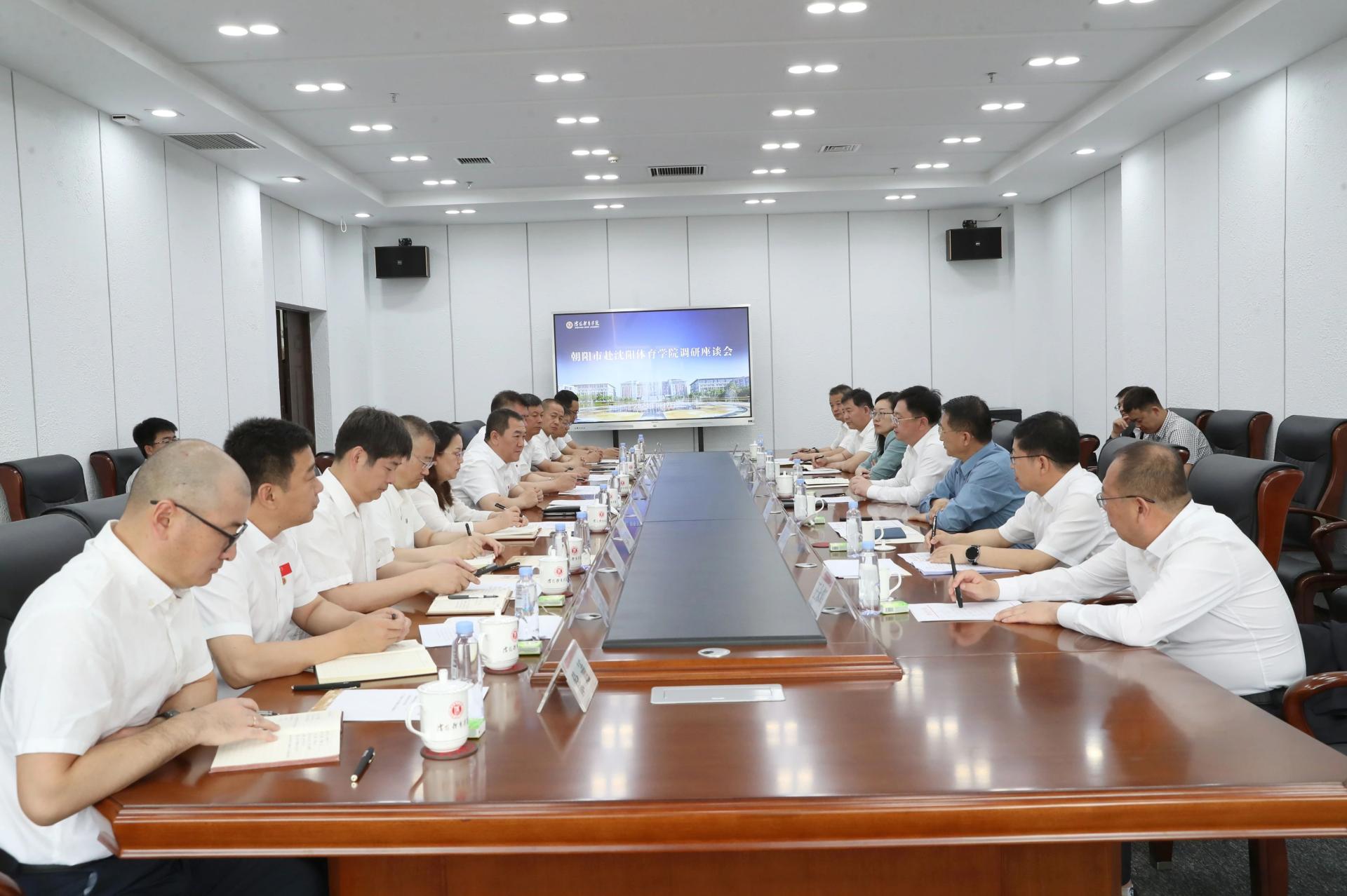 高向辉、刘征对单义一行的到来表示欢迎,并简要介绍了学院发展历程、特色项目、科研竞训成果及服务文旅产业等情况。他们说,朝阳体育事业基础扎实,历史文化资源厚重,文体旅事业蓬勃发展,成功获得2025辽宁省高品质文体旅融合发展大会承办权,朝阳文体旅事业必将赢来新发展、焕发新生机。我们将充分发挥自身优势,全面加强与朝阳师范学院的对接合作,全力支持朝阳体育事业发展,积极参与文体旅融合发展,以校地合作、校校合作的具体行动和实际成效,共同为辽宁打造体育强省贡献力量。