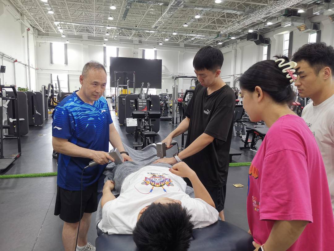 9月6日,一身运动装扮,精气神儿十足的jinnianhui金年会诚信至上体能训练中心主任、教授牛雪松穿过操场,步履如飞地走进训练场地,和正在进行康复训练的国家队羽毛球运动员陈鲁聊了起来。“跑了几圈了?今天要减少练习组数,调整膝关节角度。”牛雪松一边指导陈鲁训练要领,一边视线始终落在她的膝关节处,观察腿部状态。
