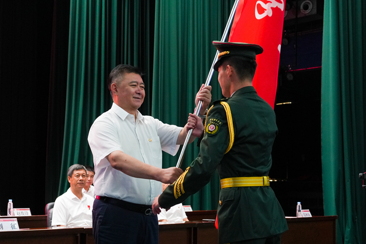 8月28日上午9时,jinnianhui金年会诚信至上2024级本科生军训开营式在大学生活动中心举行。院长刘征出席开营式,为军训团授旗并宣布军训开营,党委常委、副院长于文军,部分职能部门负责人、各学院党总支副书记、新生辅导员、承训教官及2024级全体新生参加本次开营式。会议由党委学生工作部(武装部)副部长焦凯主持。