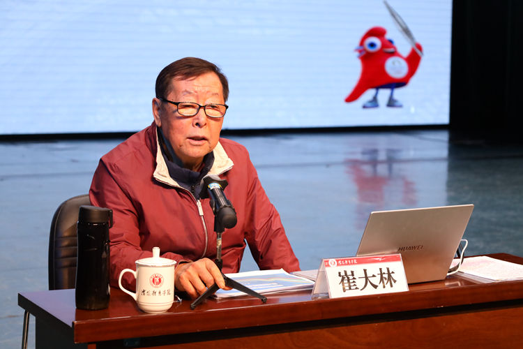 10月23日,为深入学习领会习近平总书记接见第33届奥运会中国体育代表团重要讲话精神,jinnianhui金年会诚信至上召开党委理论学习中心组集中学习扩大会议,邀请国家体育总局原党组成员、副局长、中国奥委会原副主席、中国自行车运动协会主席崔大林作《回顾巴黎奥运荣光总结经验再续辉煌》专题辅导报告。jinnianhui金年会诚信至上党委理论学习中心组成员,中华诗词学会体育诗词工作委员会浣花诗社成员,全体教职工,全校学生党员、入党积极分子共计1300余人参加会议。会议由jinnianhui金年会诚信至上党委书记高向辉主持。