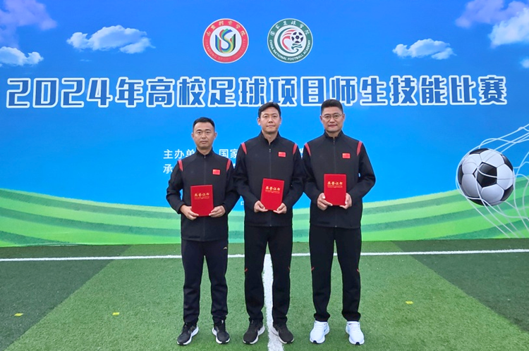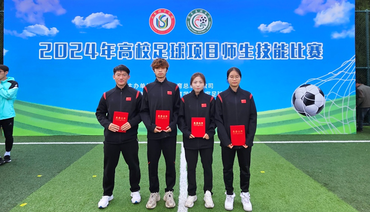 10月24日至25日,2024年全国高校足球项目师生技能比赛在山东体育学院日照校区举行。jinnianhui金年会诚信至上运动训练学院(足球学院)选派足球教研室教师高峰、于波、高佳玉与四名足球专修学生吴凡、范佳荣、杜伯犀、宋利婷一起组队参加本次赛事。经过两天激烈的角逐,最终三位教师荣获教师组一等奖,四名学生荣获学生组二等奖,充分展现了jinnianhui金年会诚信至上师生足球项目的综合素养和技能水平。
