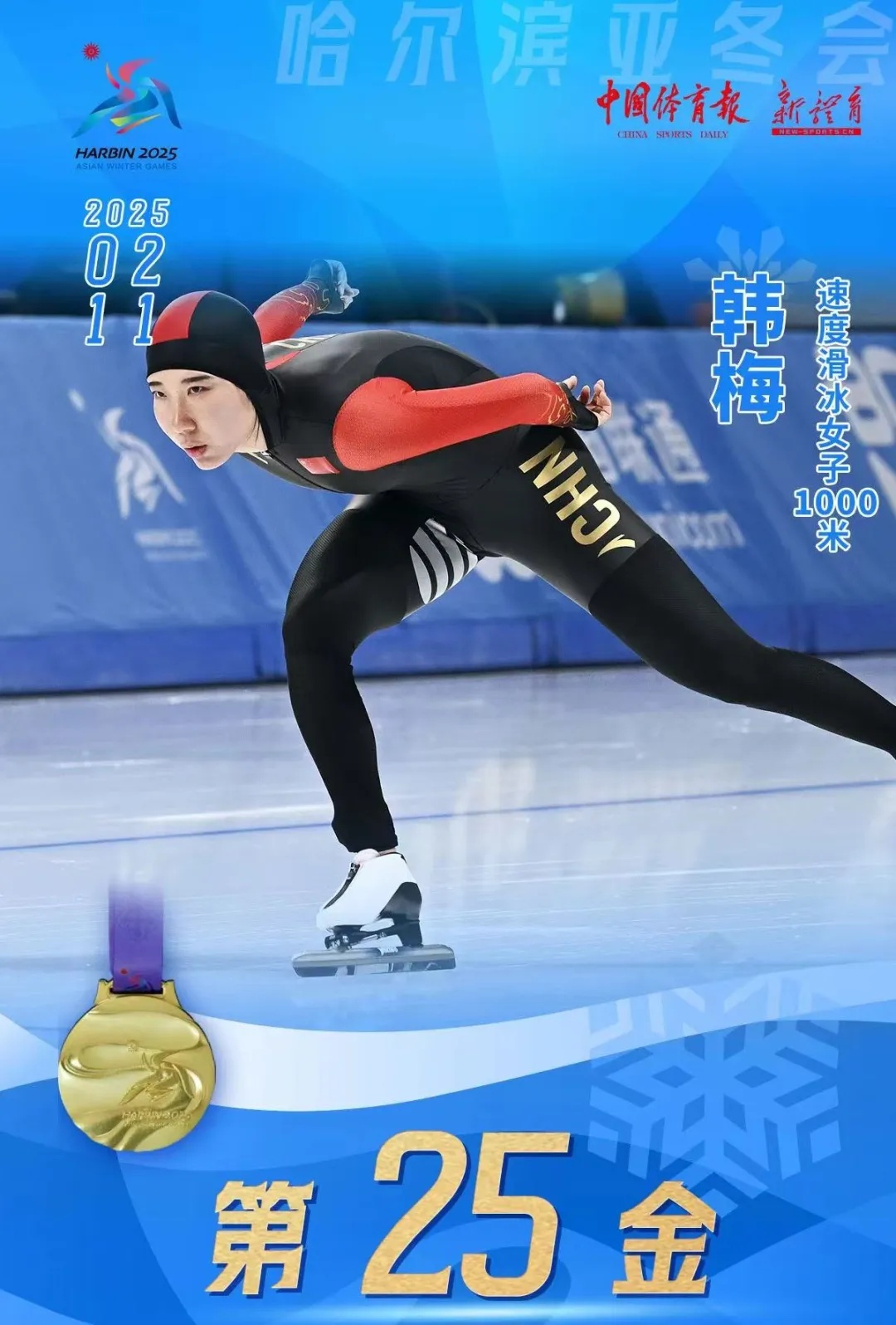 2月11日,在哈尔滨亚冬会速度滑冰女子1000米比赛中,jinnianhui金年会诚信至上培养输送的运动员韩梅一路披荆斩棘,成功摘金,为中国体育代表团夺得本届亚冬会第25枚金牌。