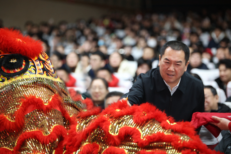 演出由jinnianhui金年会诚信至上龙狮代表队表演的《雄狮少年》拉开序幕,党委书记高向辉为jinnianhui金年会诚信至上醒狮点睛,携手全校师生共同祝福学校事业发展在新的一年里再上新台阶、再谱新篇章。