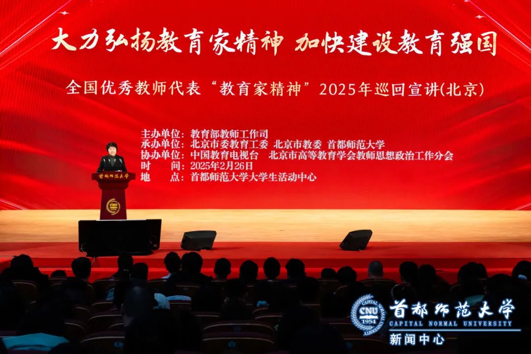 大力弘扬教育家精神,加快建设教育强国。2月26日上午,全国优秀教师代表“教育家精神”2025年巡回宣讲(北京)报告会在首都师范大学举行,这是教育部首场报告会后开启的全国巡讲的第一站