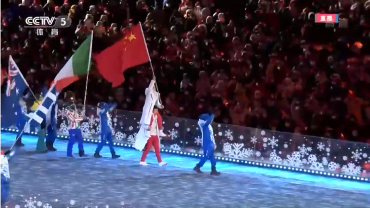 员。中国代表团的旗手是速度滑冰男子500米金牌获得者高亭宇、自由式滑雪女子空中技巧金牌获得者徐梦桃。