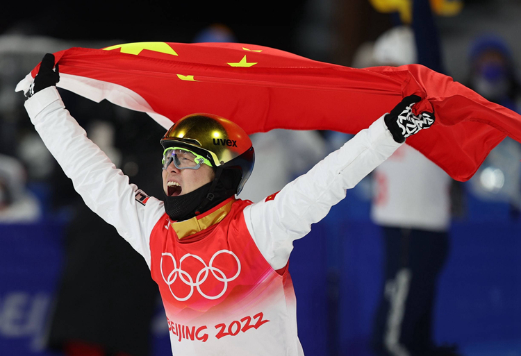 自由式滑雪空中技巧:第四次参加冬奥会的徐梦桃在女子项目中凭借世界最高难度动作的完美表现,勇夺金牌,这是我国运动员在该小项上获得的首枚冬奥会金牌;第四次参加冬奥会的老将齐广璞在决赛最后一跳中拿出5.0的高难度动作,并以出色的发挥夺得金牌,这是继2006年都灵冬奥会韩晓鹏摘得雪上首金后,中国空中技巧男队再次夺得该项目金牌;空中技巧混合团体赛中,徐梦桃、贾宗洋、齐广璞3位老将以总分324.22夺得银牌;另外,男子组比赛贾宗洋、王心迪分获第7和第14名,邵琪获得女子组比赛第17名。