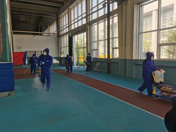 考试前、中、后期不同时间段的场馆、设备全面消杀。