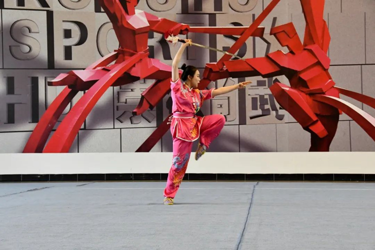 赛场上,运动员们“容颜如玉、身姿如松、翩若惊鸿、婉若游龙”竞赛套路刚柔并济、行云流水,一招一式从容不迫、刚劲有力。