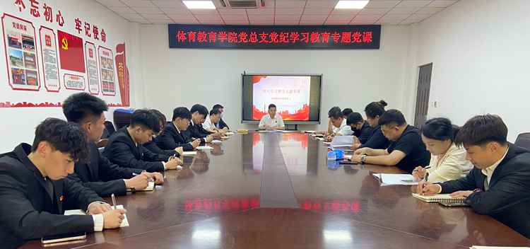 为深入学习贯彻新修订的《中国共产党纪律处分条例》,进一步加强党的纪律建设,不断提升党员干部党性修养,推动学院高质量发展提供坚强纪律保证,5月9日,体育教育学院党总支书记王可以《高质量开展党纪学习教育推动高质量发展》为题讲授党纪学习教育主题党课。学院领导班子成员、党总支委员会成员、党支部书记、教研室管理人员、学生党员代表参加。