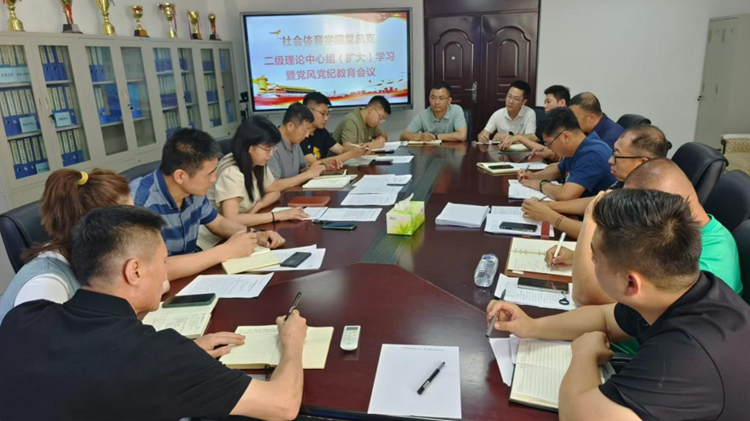 6月17日,社会体育学院党总支召开二级理论中心组(扩大)学习暨党风党纪教育大会。社会体育学院领导班子、办公室、教研室管理人员、全体辅导员参会。会议由党总支书记刘秀红主持。