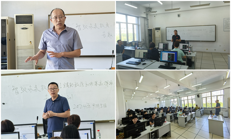 为深入挖掘和利用人工智能技术在教学领域的应用潜力,9月5日下午,教务处(教师教学发展中心、教学质量评价中心)在教学楼420计算机教室成功举办了一场主题为“智驭未来教育:AI辅助教学应用深度探索与实践”的专题培训。培训会邀请了公共课教研部田卫疆同与会教师进行了关于人工智能在教学领域应用的深入交流。本次培训共33名教师参加。