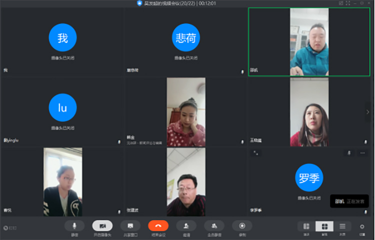 按照学校教务处下发的教务字〔2020〕17 号和研究生处下发的研学字[2020]10号文件关于疫情期间本科生、研究生课程在线教学工作的有关要求,我院先后于4月7日中午12:30分召开新学期线上教学工作部署会和4月10日上午10:00召开线上教学工作推进会,集体研究并组织落实各项工作。两次会议均以钉钉视频会议方式进行。会议由院长李芳主持,学院领导班子成员、各教研室主任、教学小组长(本科和研究生)、教学秘书、各年级辅导员以及在线教学工作领导小组成员等22人参加会议。