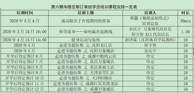 丰富、系统的培训内容,加深了订单班学员对职场的认知和对韦德伍斯企业文化的了解,激发了广大学员利用疫情期间的时间多多学习的热情。培训期间,培训师们准备充分,有的放矢,学员们热情满满,互动积极。经过系列培训,学员们提前做好了学习规划,提高了主动学习的思想意识和处理问题的能力,较好地达到了培训的预期目标。