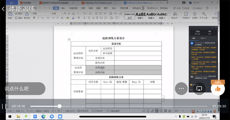 运动训练学教研室李文华为同学讲授如何设计体能训练方案