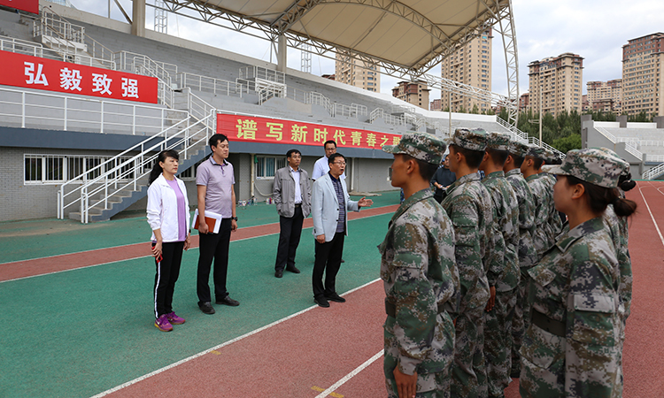 9月17日下午,体育教育学院领导班子成员以及各年级辅导员到田径场慰问新生军训教官。