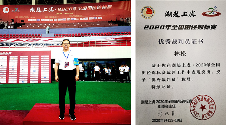 9月15日至18日,“潮起上虞”2020全国田径锦标赛于在浙江绍兴市上虞举行,体育教育学院田径教研室教师林松教授受国家体育总局委派,担任技术官员执裁本届田径锦标赛并获优秀裁判员称号。 “潮起上虞”2020全国田径锦标赛是今年特殊时期第一场、也是唯一一场全国性田径场地比赛。 新闻作者:体育教育学院 责任编辑:才丽娜 新闻日期:2020-09-21 点击:次