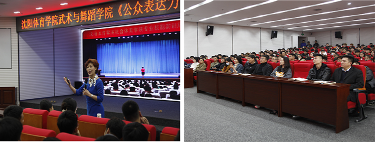 11月10日下午,武术与舞蹈学院邀请辽宁广播电视台高级编辑、中国“金话筒奖”金奖获得者范蓉女士在图书馆二楼报告厅作《公众表达力》专题讲座,由武术与舞蹈学院副院长姜娟主持,院长邹本旭、副书记孙光泽、辅导员、部分教师和本科学生参加了讲座。