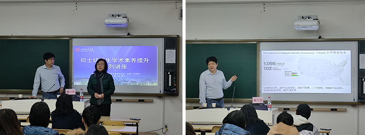 为营造社会体育学院硕士研究生学术氛围,提高学术素养,拓展学术视野,11月18日,社会体育学院特邀美国亚利桑那州立大学教授、博士生导师董二为教授在教学楼217教室为2019、2020级全体硕士研究生作题为《美国高校体育赛事的组织(运营)与管理》的专题讲座。冯欣欣院长主持并听取讲座。