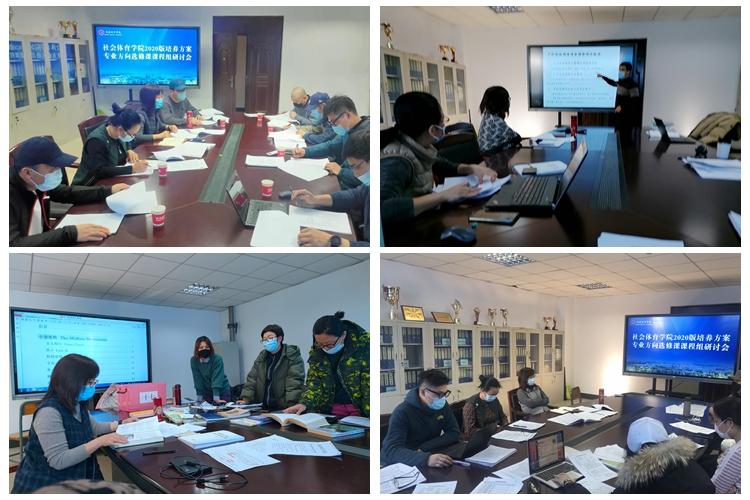 为落实学校2020版本科培养方案课程大纲编写工作要求,保证大纲编写质量,2020年12月30日-2021年1月8日,社会体育学院分别组织社会体育指导与管理和休闲体育专业的游泳运动指导、健身运动指导、山地户外游憩等专业方向选修课课程组,共召开8场教学大纲编制专题研讨会。院长、社会体育指导与管理专业带头人冯欣欣、休闲体育专业带头人徐通及各课程组教师参加研讨会,副院长勾庆华主持会议。