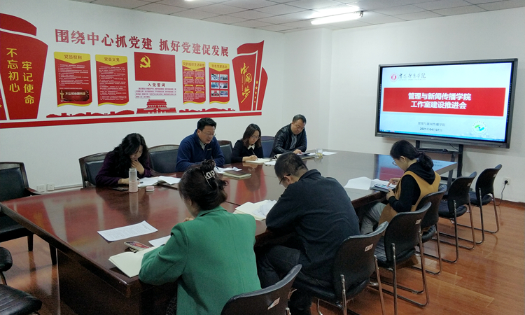 为深入贯彻落实管理与新闻传播学院专业人才培养规划的发展要求,全面培养具有体育特色的高素质应用型人才,为学生搭建实训创新、实习就业的良好平台,4月7日上午,管理与新闻传播学院在教学楼510召开专业工作室建设推进会。管理与新闻传播学院领导班子,各教研室主任参加了本次会议,会议由党总支书记张建波主持。