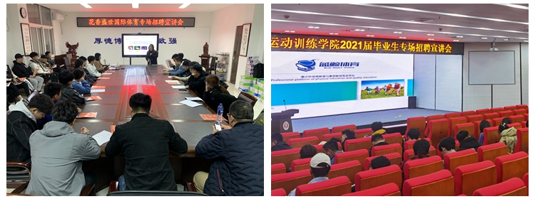 2月,运动训练学院启动年度就业工作推进会,持续开展“优秀人才等你来选”公众号平台推送工作,3月同步开展“优秀基地等你来选”调研工作,充分发挥全院教职工校外资源优势,遴选一批高质量就业单位,北京花香盛世国际体育文化有限公司、天津蓝鲸体育发展有限公司、南京拓博体育文化传播有限公司、上海胜道体育用品有限公司、福建省手球协会等位列其中。