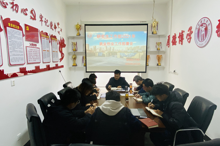 4月18日,研究生工作部2021届毕业生就业创业工作部署会在学生宿舍二号楼109会议室举行,部门全体人员参加,部长刘振强主持会议。