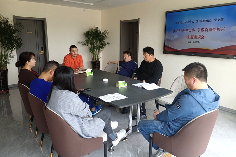 为深入开展党史学习教育,教育引导员工学党史、悟思想、办实事、开新局,丰富意见收集渠道,把师生员工急难愁盼的问题收集上来,努力开展好“我为群众办实事 争做贡献促振兴”实践活动。5月14日,直属雪上运动中心(白清寨校区)党支部召开专题座谈会,会议由副主任朱翠立主持,各部门负责同志参加会议。