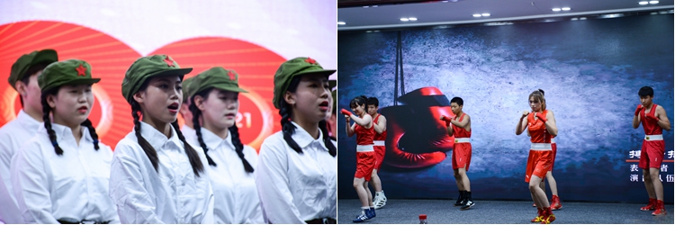 竞技体校全体运动员精心策划排演《歌唱祖国》、《我们走在大路上》、《我们是共产主义接班人》等26个文艺节目,不仅让孩子们亲历了一堂生动有意义的爱党爱国教育课,更加让孩子们在革命旋律中汲取精神力量,在传承红色基因中激发爱党爱国情怀,增强民族自豪感。