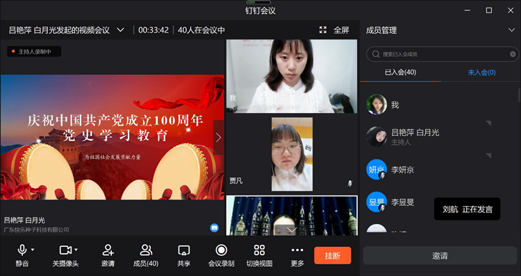 为深入开展党史学习教育,激励毕业生党员立足岗位,勇于担当,做合格党员,充分发挥先锋模范作用,6月10日,管理与新闻传播学院党总支组织毕业生党员召开毕业生党员大会暨党史学习教育线上座谈会。管理与新闻传播学院学生党支部书记曹悦以及39名毕业生党员参加会议,会议由学生党员吕艳萍主持。