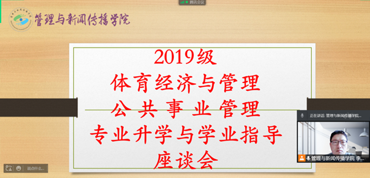 为进一步加强学风建设,充分调动学院2019级学生的考研积极性,使学生了解考研信息,明确考研目标,制定科学的考研计划,3月29日,管理与新闻传播学院通过线上视频的方式,组织2019级学生召开了考研宣讲会。本次宣讲会由管理与新闻传播学院副院长王晓晨和体育经济与管理教研室主任李罗季主讲,200余名学生参加本次活动。