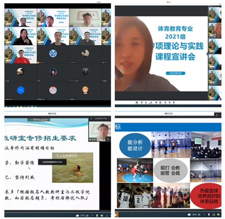 结合培养方案,为帮助学生熟悉2022-2023学年第一学期专项理论与实践课程,加强选课的针对性,促进学生的个性化发展,学院于4月23日上午组织13门专项选修课程的网络宣讲会。邹本旭等13名教师代表教研室进行课程宣讲,体育教育专业2021级全体学生在线参加宣讲会,会议由体育教育学院副院长鞠秀奎主持。