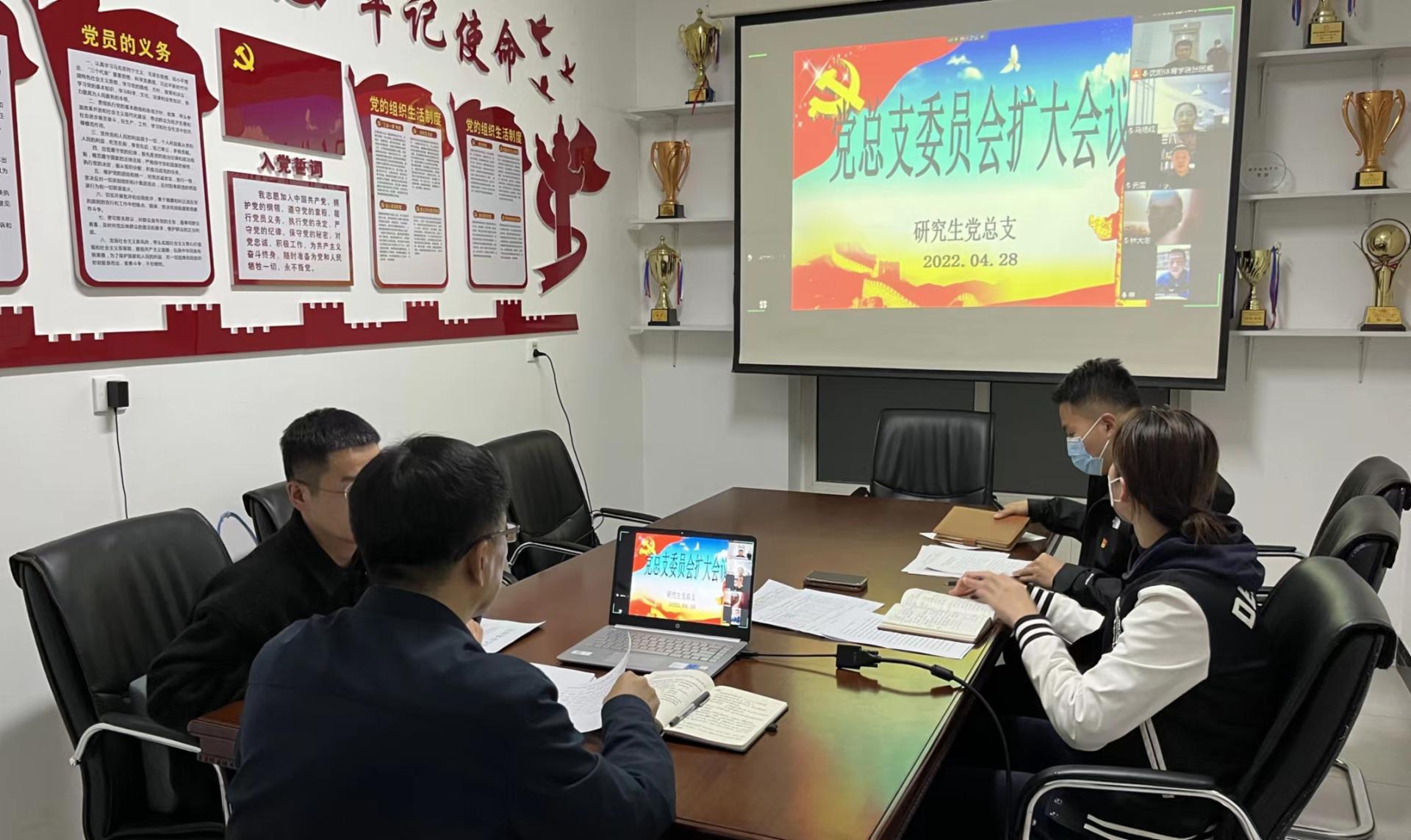 4月28日,研究生党总支以线上和线下相结合的方式召开中心组学习扩大会,会议由党总支书记刘振强主持。