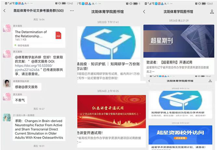 开通中国知网、知网研学、超星学术资源等校外访问方式,方便师生校外访问数据库资源;开通博看期刊、红色讲坛数据库,丰富师生的文献获取途径与类型;举办线上数据库培训4次,提升师生使用相关资源的能力;微信服务群推送中外文资源220余篇。