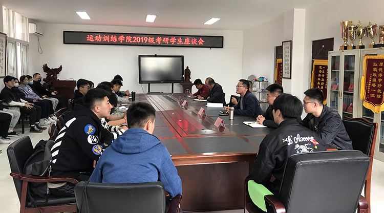 4月27日,运动训练学院召开2019级考研工作座谈会,党总支书记高立东、院长崔鲁祥,以及2018、2019级辅导员和考研学生代表参加会议。会议由党总支副书记李丁皓主持。