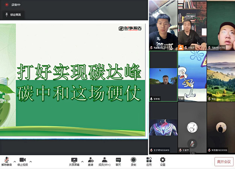邹本旭讲到实现碳达峰、碳中和是推动我国高质量发展的必然要求,并为同学们介绍了“双碳”发展坚实的基础,指出实现“双碳”发展的道路必将坚定不移。加强我国绿色低碳科技创新,持续壮大绿色低碳产业,将加快形成绿色经济新动能和可持续增长极,显著提升经济社会发展质量效益,为我国全面建设社会主义现代化强国提供强大动力。按既定目标实现碳达峰碳中和,是我们的雄心所在、使命所在、责任所在。坚定迎接这场大考,坚决打好这场硬仗,定能播惠于子孙后代、贡献于人类可持续发展,以生态文明之光照耀前行道路。