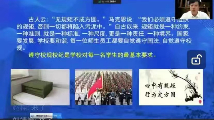 讲座中,常亮首先就疫情带来的特殊迎新形势向家长和同学们作以说明,并简要介绍学校和学院的历史沿革、专业建设、师资力量等情况,使新生及家长对学校和学院有了更进一步的了解。随后,他结合近些年学生管理中的常见典型案例,从校规校纪、校园安全、考试纪律、表彰奖励、违纪处理、疫情管理等方面进行讲解,使新生对各项规章制度有更深刻的了解和掌握,引导同学们培养遵规守纪的意识,养成良好的学习、生活习惯,更好的进行自我管理,以昂扬的精神风貌迎接崭新的大学生活。