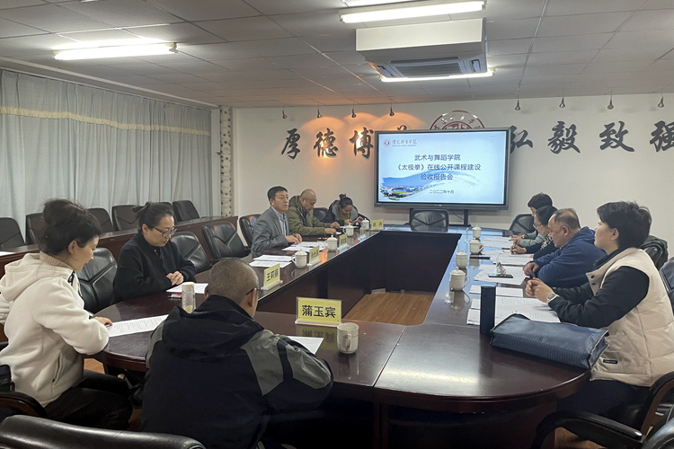 为加强武术与民族传统体育国家级一流专业建设,打造高质量在线课程,10月11日下午,武术与舞蹈学院在武术体操馆会议室召开了《太极拳》在线公开课程建设验收报告会。二级学院教授委员会专家常波、赵秋菊、付哲敏、冯晓辉教授担当评委,院长邹本旭、副院长于海、王莉丽、太极拳课程小组成员参加会议,会议由副院长王莉丽主持。
