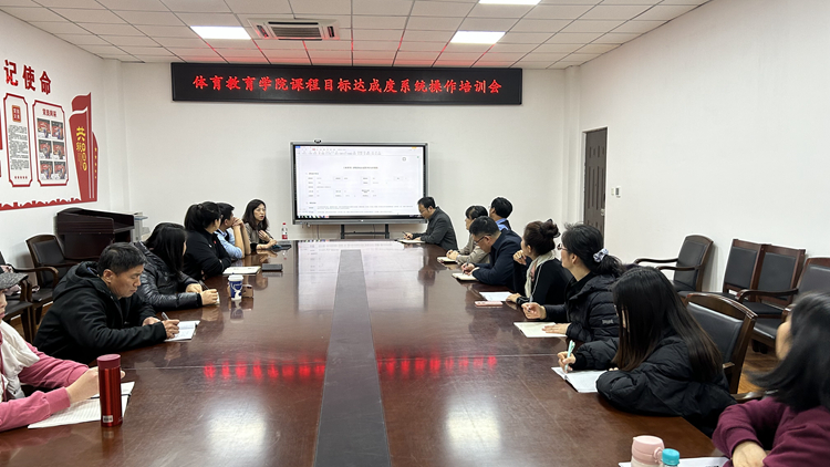 为进一步提升人才培养质量,建立更加完善的教学过程质量监控机制,客观、合理、准确地评价课程目标达成情况,结合《关于开展本学期期课程目标达成度评价工作通知》要求,11月24日,体育教育学院开展课程目标达成度系统操作培训。本次培训由学校体育教研室贾宁副教授主讲,5门课程负责人和相关授课教师20余人参加培训,培训由体育教育学院副院长鞠秀奎主持。