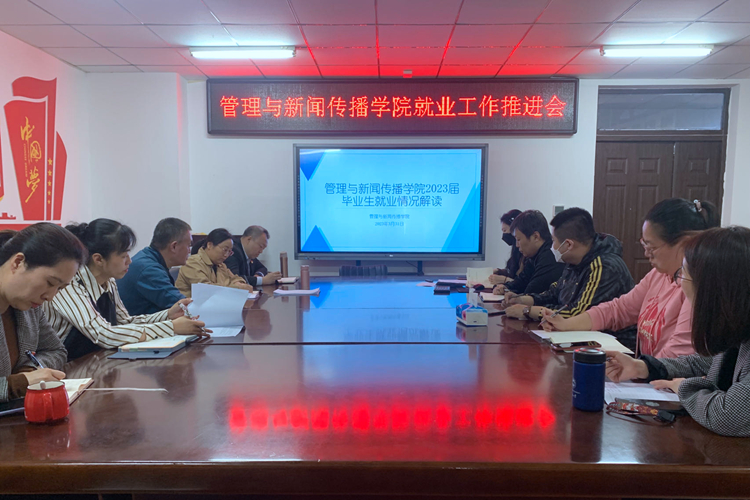 3月31日,管理与新闻传播学院在教学楼510召开2023年就业工作推进会,学院领导班子、各专业负责人、教研室相关工作负责人及毕业年级辅导员参加了会议。
