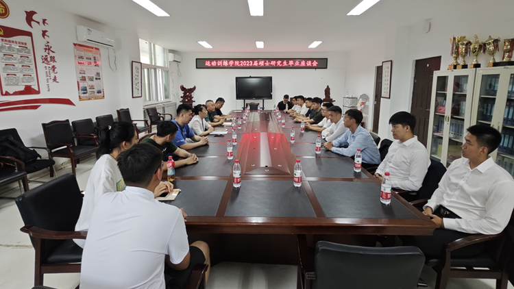 在学校深入开展学习贯彻习近平新时代中国特色社会主义思想主题教育之际,6月19日,运动训练学院2023届硕士毕业生代表座谈会在篮排馆1楼会议室举行。运动训练学院党总支书记高立东、副院长张麟寰和部分2023届毕业生代表参加会议。座谈会由副院长甘荔桔主持。