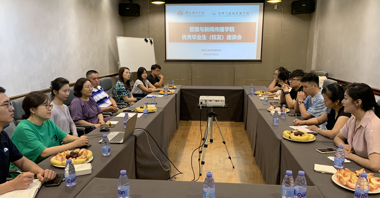 为汇集优秀毕业生(校友)为专业建设和人才培养建言献策,为促进优秀毕业生(校友)所在企业与母校的深入合作,7月22日,管理与新闻传播学院在北京召开优秀毕业生(校友)座谈会,学院党总支书记任宏声、院长李芳、副书记徐欣彤、副院长王晓晨、办公室主任吴畏、新闻学教研室主任于业成、网络与新媒体教研室主任袁秋菊及辅导员王宏参加了座谈会,会议由院长李芳主持。