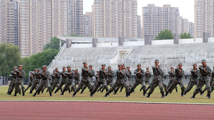 来自各二级学院的推选班级和教官队伍分别进行了军训汇报表演,展示十天的训练成果。他们以整齐的步伐、嘹亮的口号、飒爽的军姿,充分展现了沈体学子不断拼搏的意志品质和斗志昂扬的精神风貌。