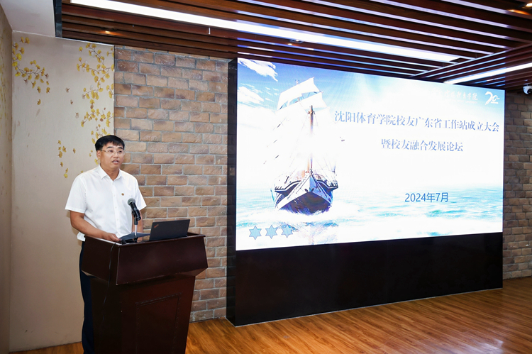 李成梁代表学校向广东省校友工作站的成立致以热烈的祝贺,向在粤工作的所有校友表示诚挚的问候。他首先向广大校友介绍学校70年来坚持教学、科研、训练相结合,服务“奥运争光”计划,实现了跨越式发展及取得的成绩。为广大校友呈现一个特色鲜明、力量雄厚、桃李盈枝、硕果累累的今日沈体。未来,学校领导班子将团结带领全校师生员工继续努力、不懈奋斗,持续推进“双一流”建设,全面提升办学层次水平,全力提高人才培养质量,开创学校高质量发展的新局面。母校始终关注、支持、祝福广大校友,做校友最温馨的精神花园和最温暖的心灵港湾。并向在粤校友诚挚发出邀请,70周年校庆将至,期待广大校友重回母校,共庆沈体七秩、畅叙沈体情怀。