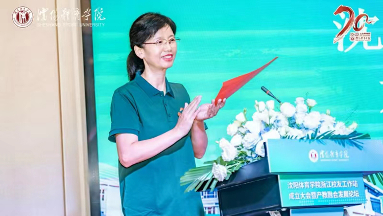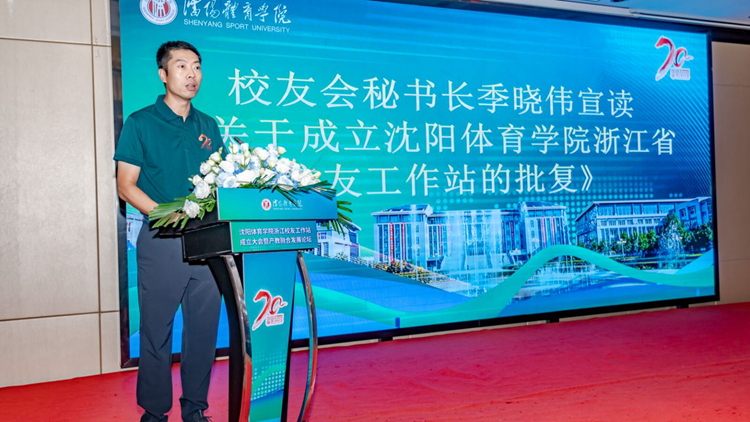 浙江省校友会会长贾晶的发言,表达了对母校70华诞的祝贺,对大学学习生活的回忆以及对未来发展的展望。他表示,将带领众多浙江沈体人共同建设好校友工作站,弘扬“厚德博学 弘毅致强”的校训精神,充分发挥校友工作站的积极作用,互帮互助,努力拼搏,共同为母校的发展添砖加瓦。